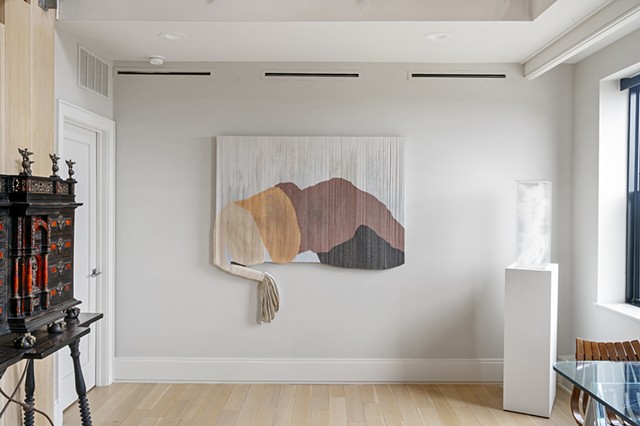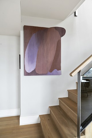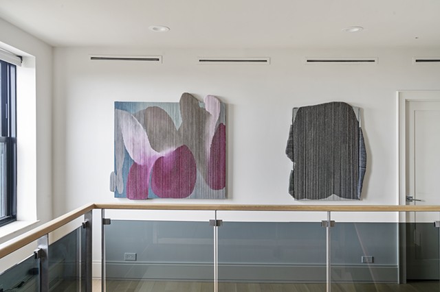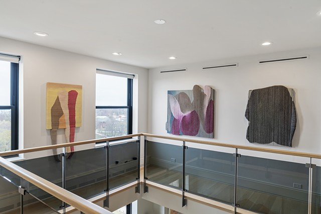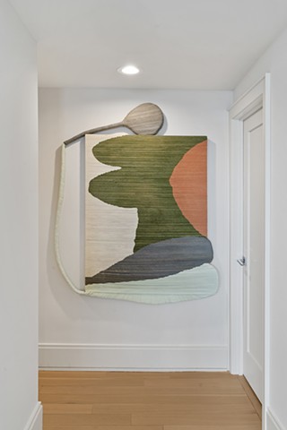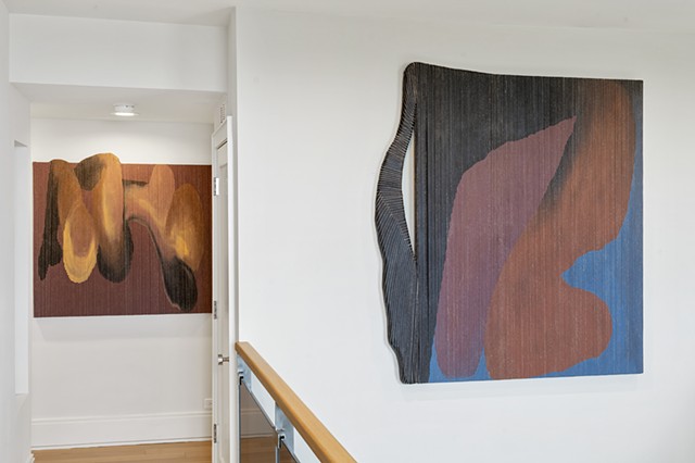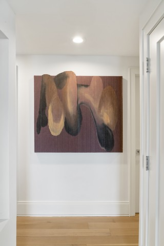 Alexander Frater’s paintings begin as large, expansive color fields on oversized canvases, lush with pigment, figures swelling into the full scale of the room. The paintings are then torn into strips, wrapped, layered, and rebuilt, each work compressed to roughly one-third of its original size. The result is not a diminishment but a densification: color and form folded back on themselves, their energies concentrated. What was once open becomes intimate. What was immersive becomes something you want to move close to, to touch.